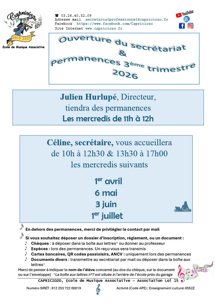 Permanence secrétariat mercredi 01 avril